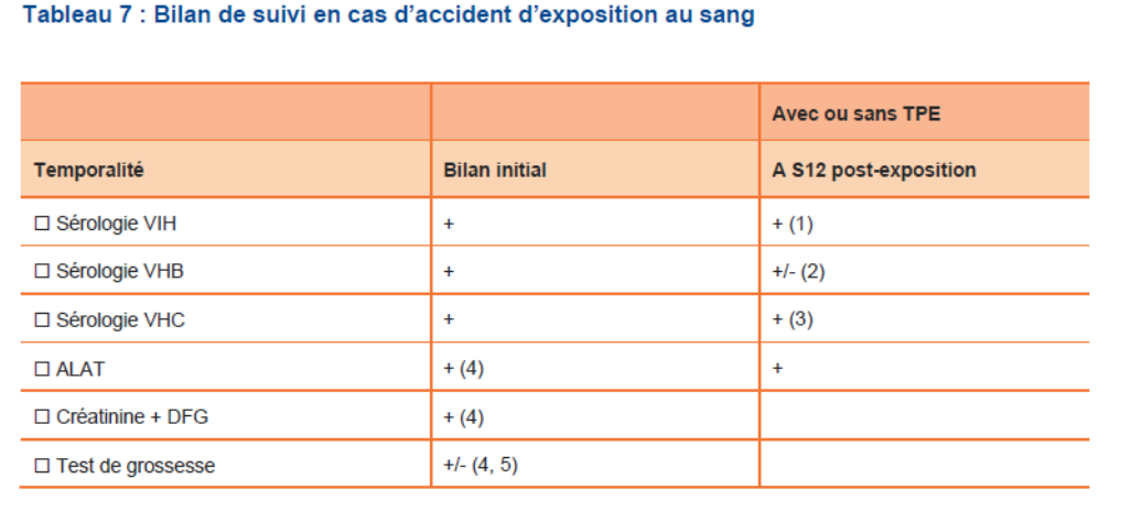 • Sérologie VHC à 3 mois si risque VHC (AES sanguin, AES sexuel anal ou traumatique ou en période menstruelle)